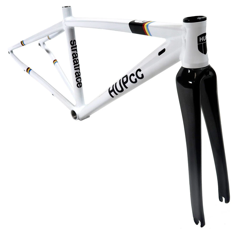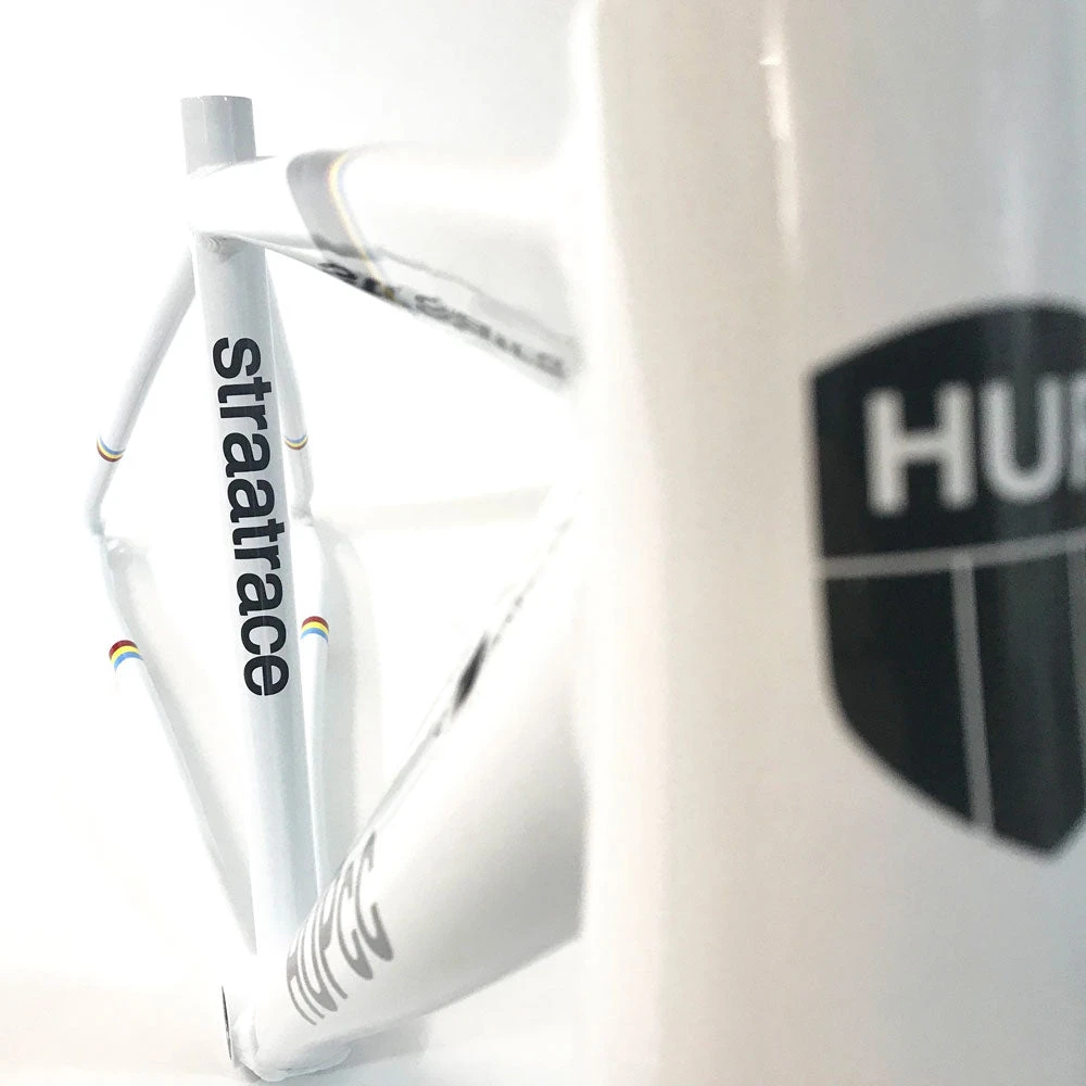 With a lightweight triple-butted 7005 frame and carbon fork, the #HUPstraatrace uses the latest internal cable technology with easy fitting for novice mechanics thanks to a downtube ‘letterbox’. When built with HUP cranks, riders benefit from the correct length/q-factor to match the high cadence of criterium road races.
