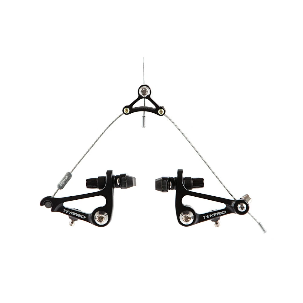 Brake straddle cable carrier for cantilever brakes – with locking grub-screws to centreΒ the cantilever arms, in black Alloy. Includes straddle cable and cable end;