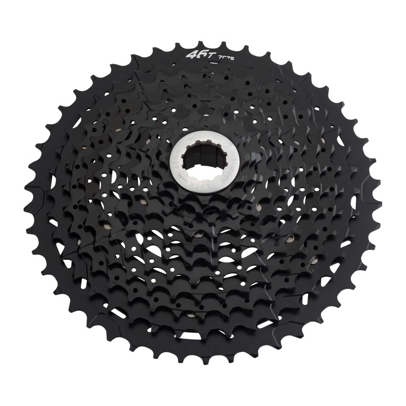 Microshift XCD series 11-speed cassette withΒ Aluminium alloy bracket spider, ED Black / Anodized black sprockets and wide-range 11-46t;